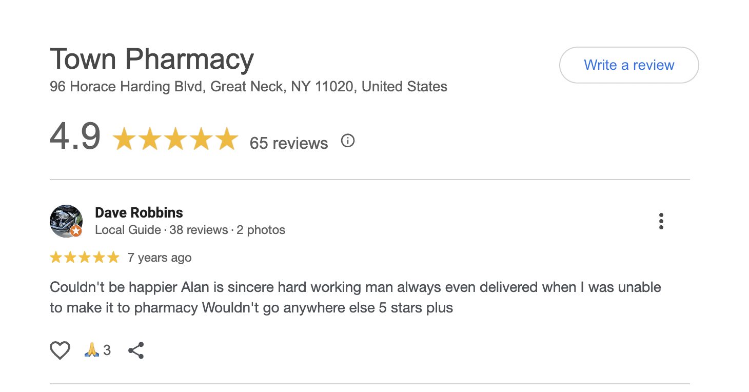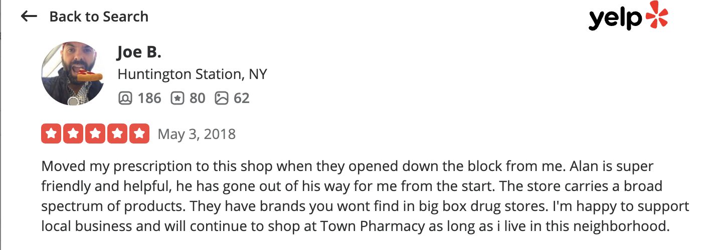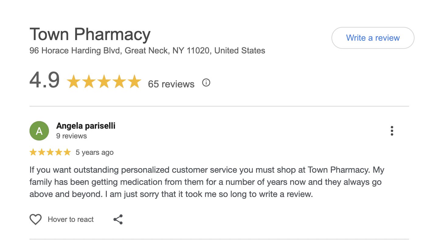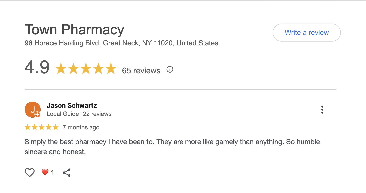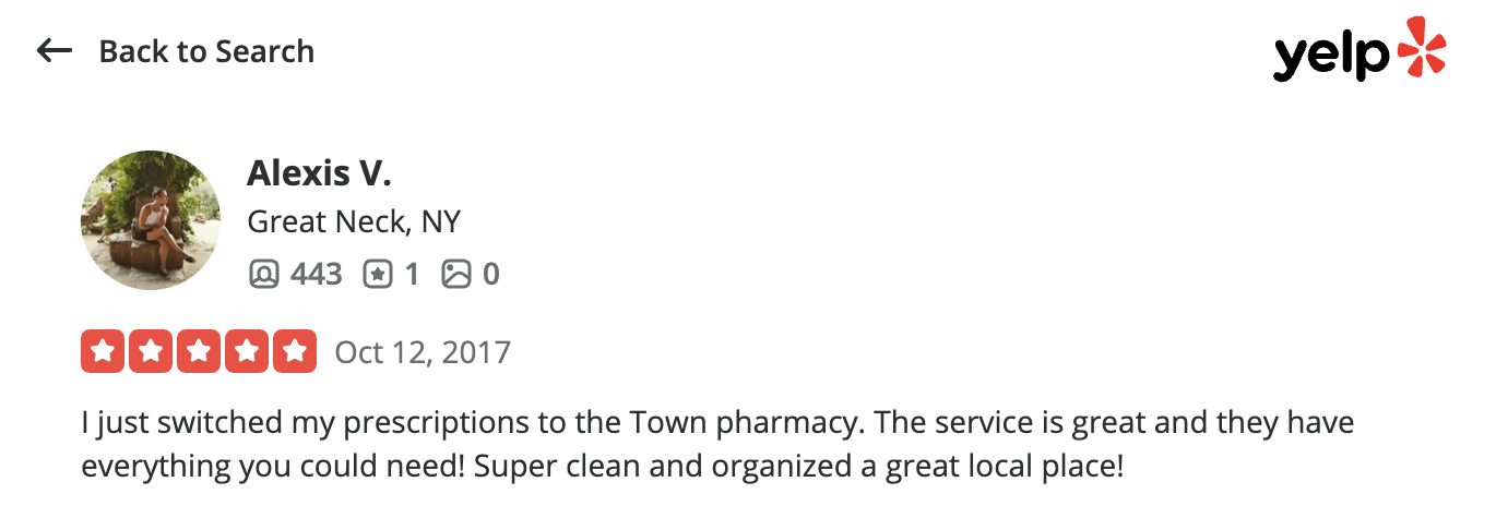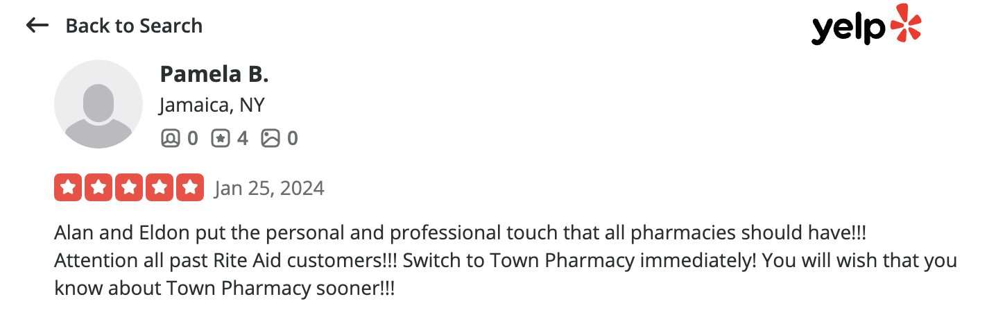 This is a compilation of all reviews received at Town Pharmacy during our time owning and operating the store daily from 2015–2025. We never once solicited anyone for a review. Listed in chronological order.