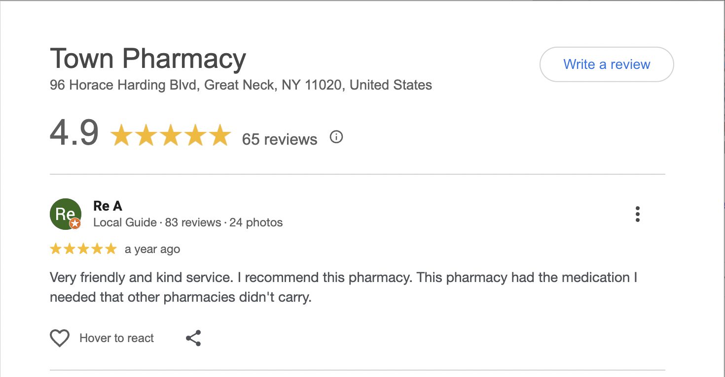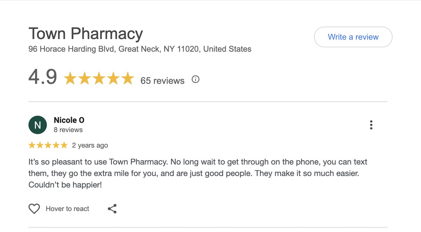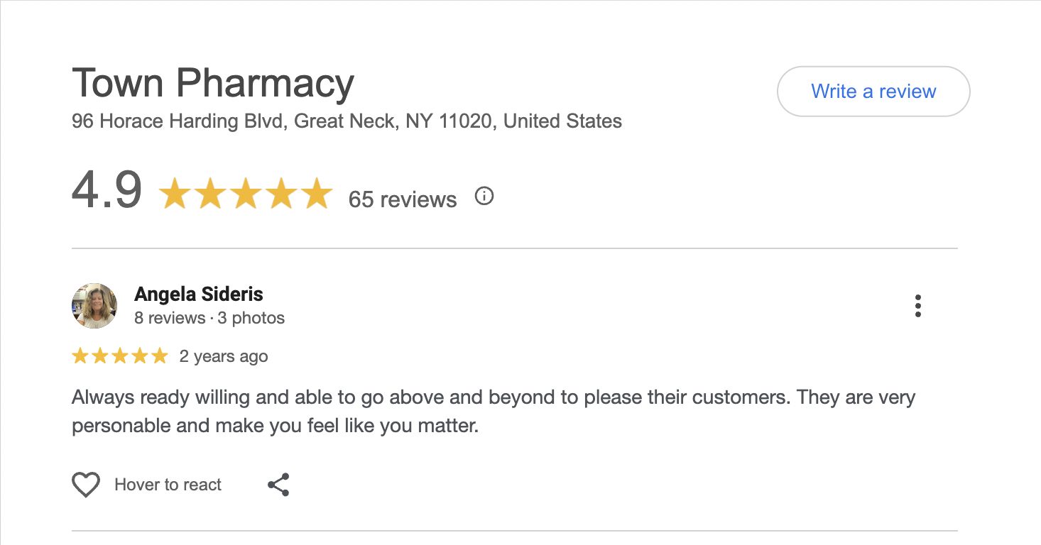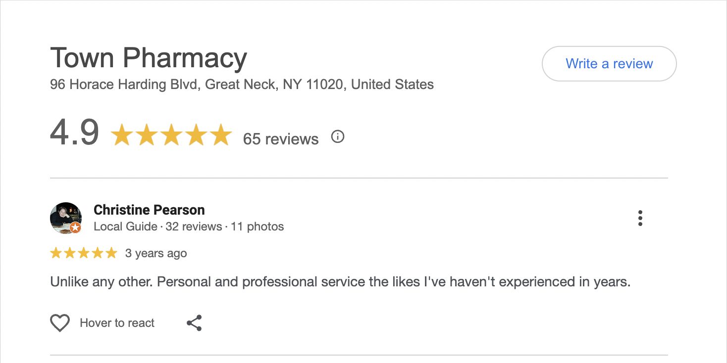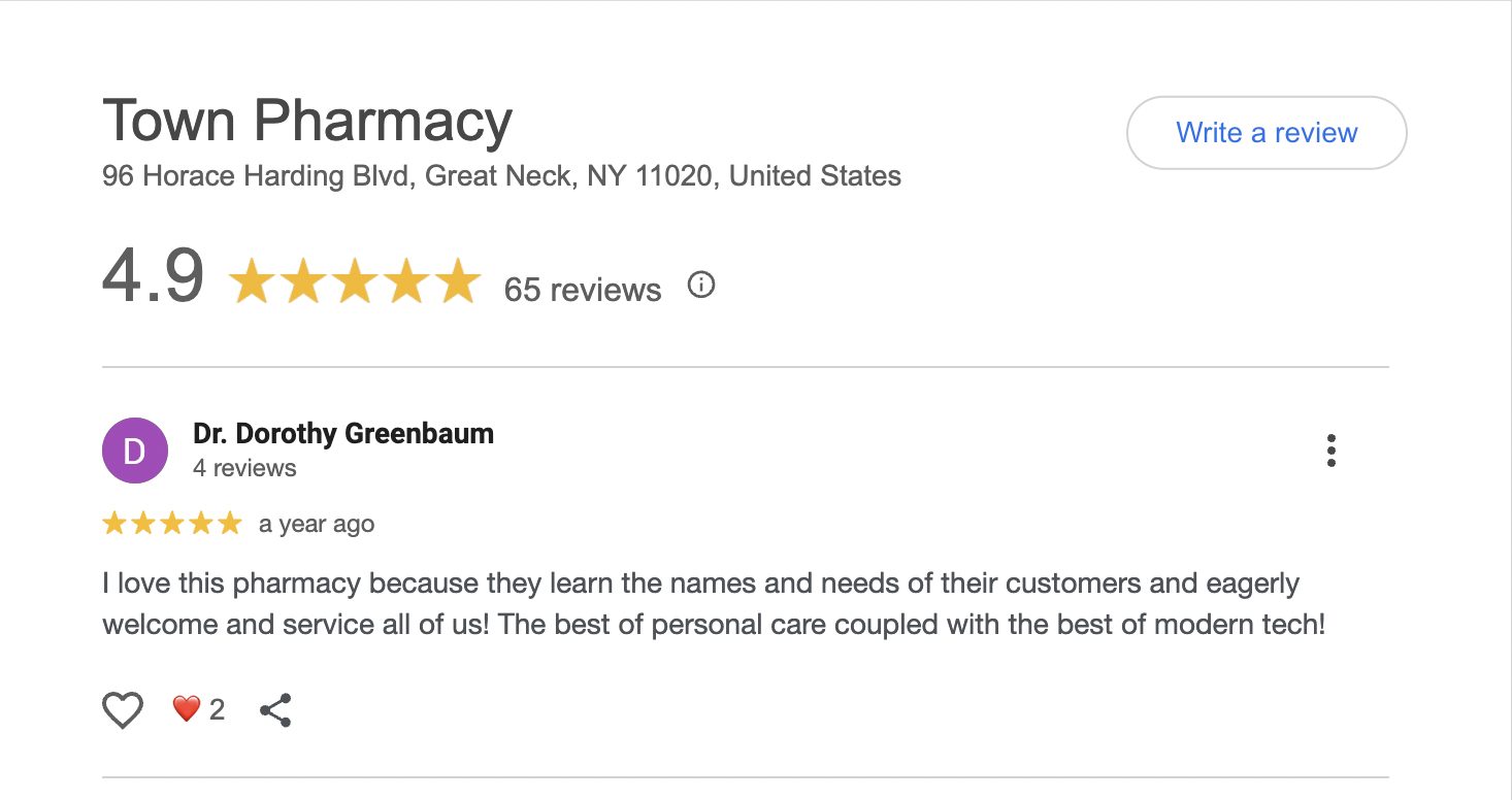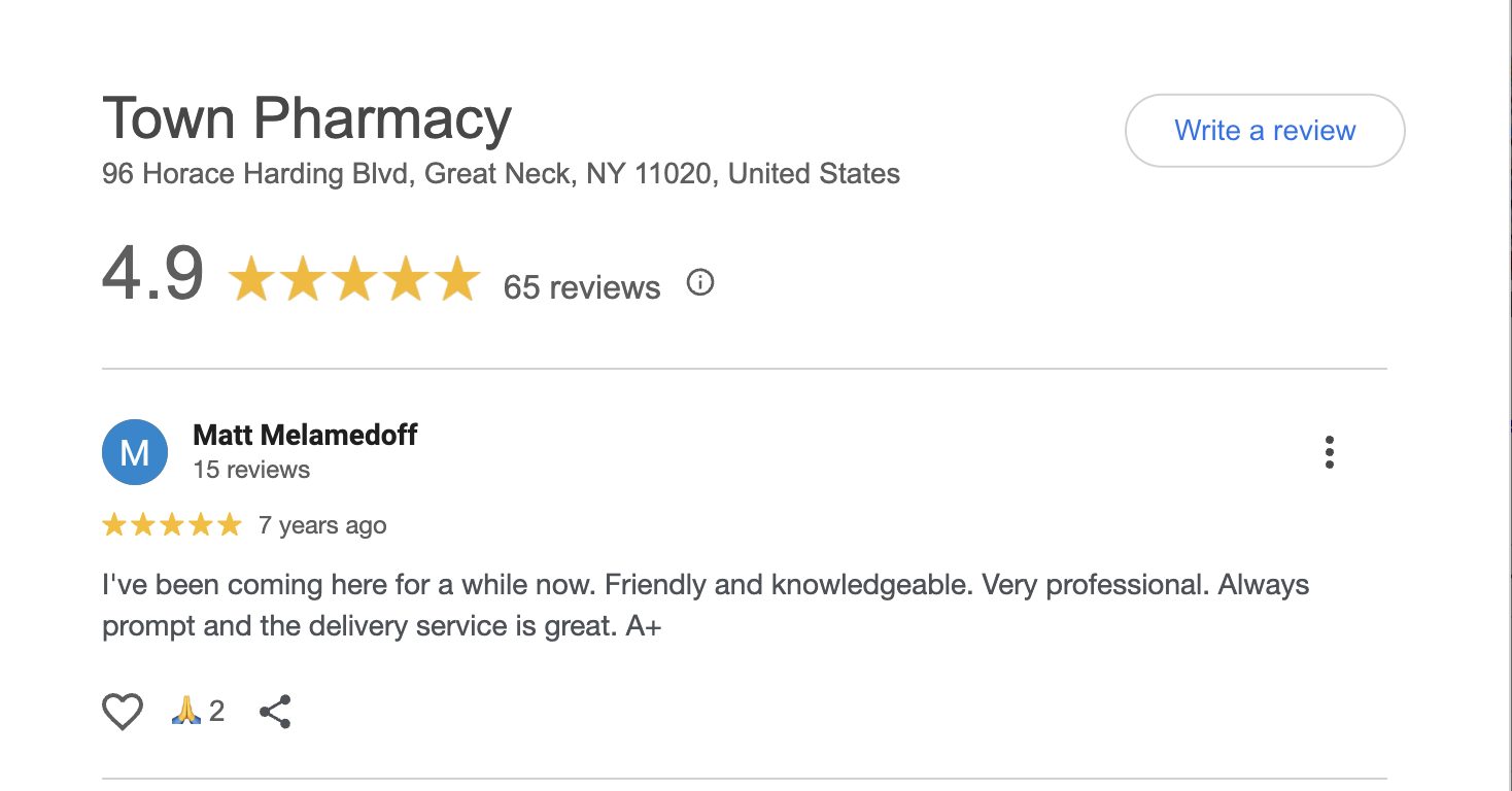 This is a compilation of all reviews received at Town Pharmacy during our time owning and operating the store daily from 2015–2025. We never once solicited anyone for a review. Listed in chronological order.