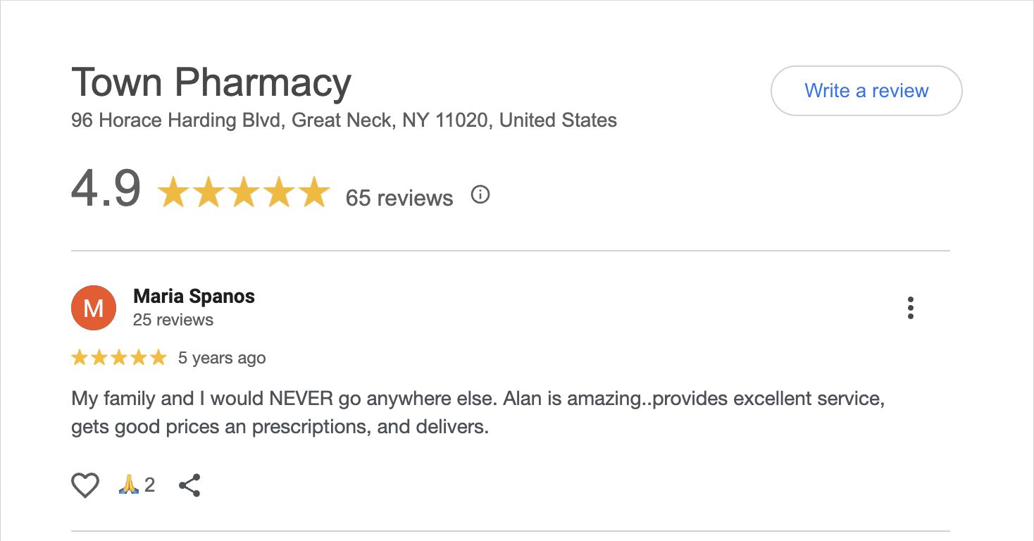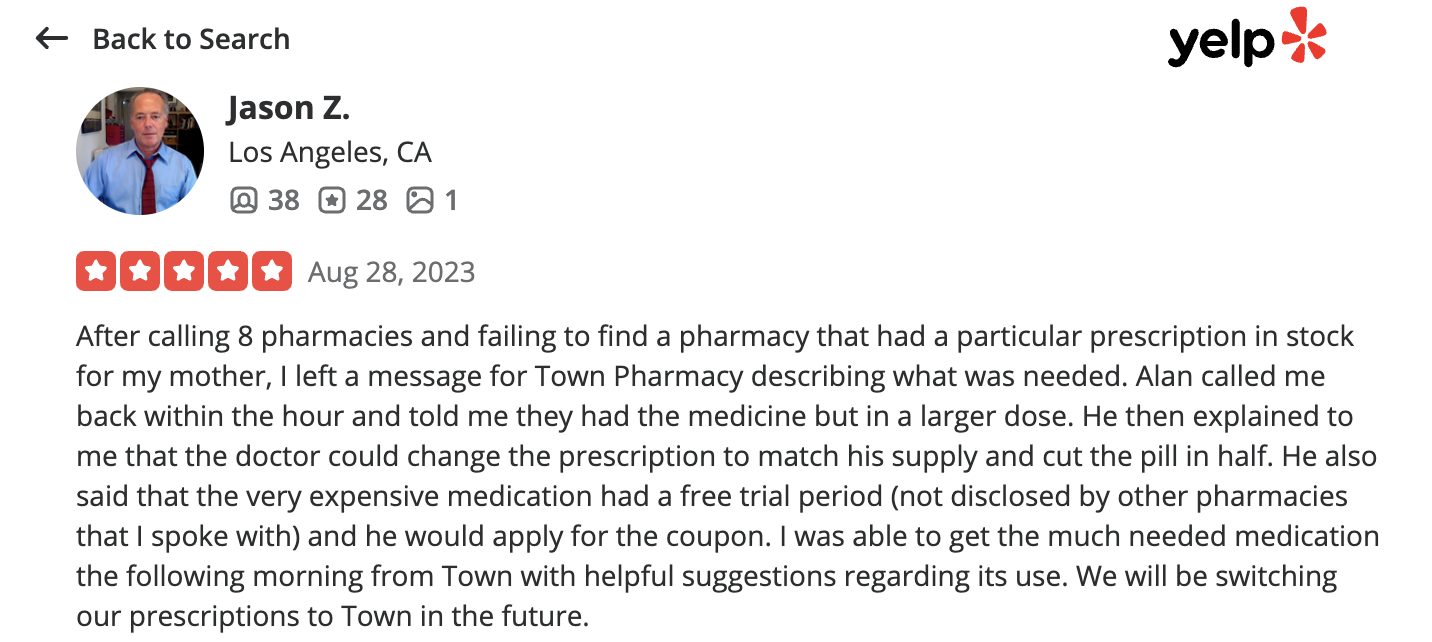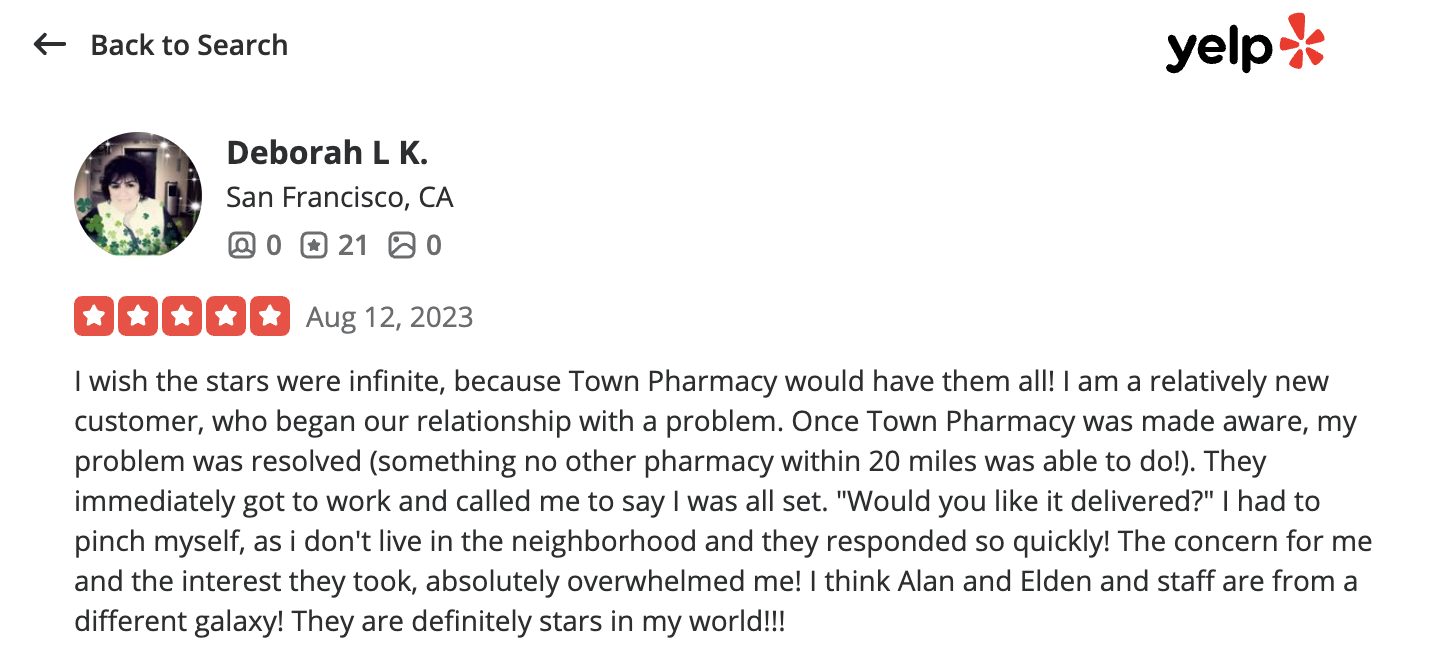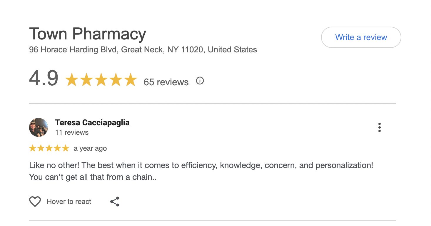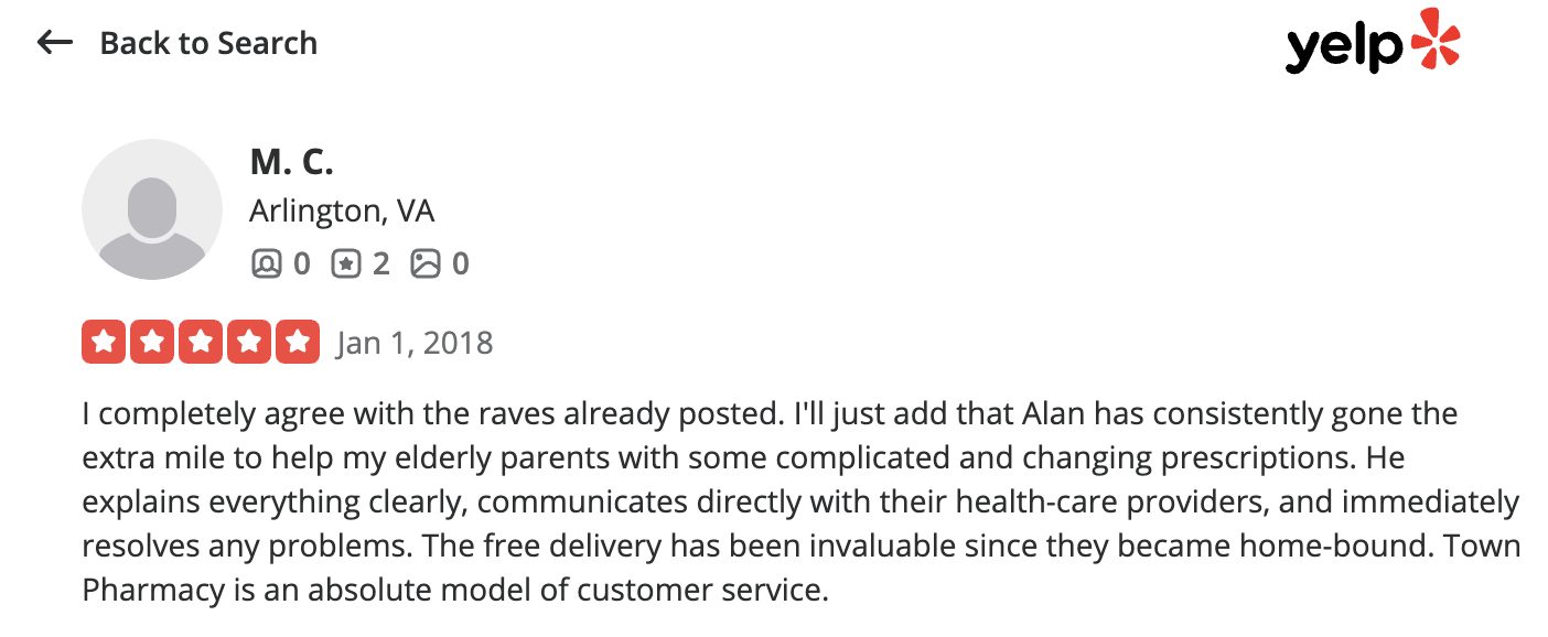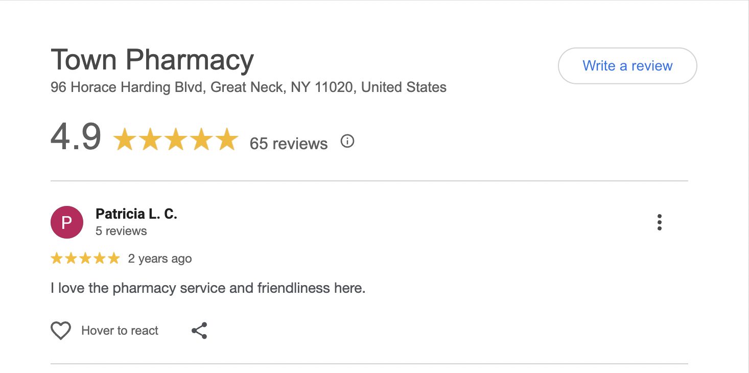 This is a compilation of all reviews received at Town Pharmacy during our time owning and operating the store daily from 2015–2025. We never once solicited anyone for a review. Listed in chronological order.