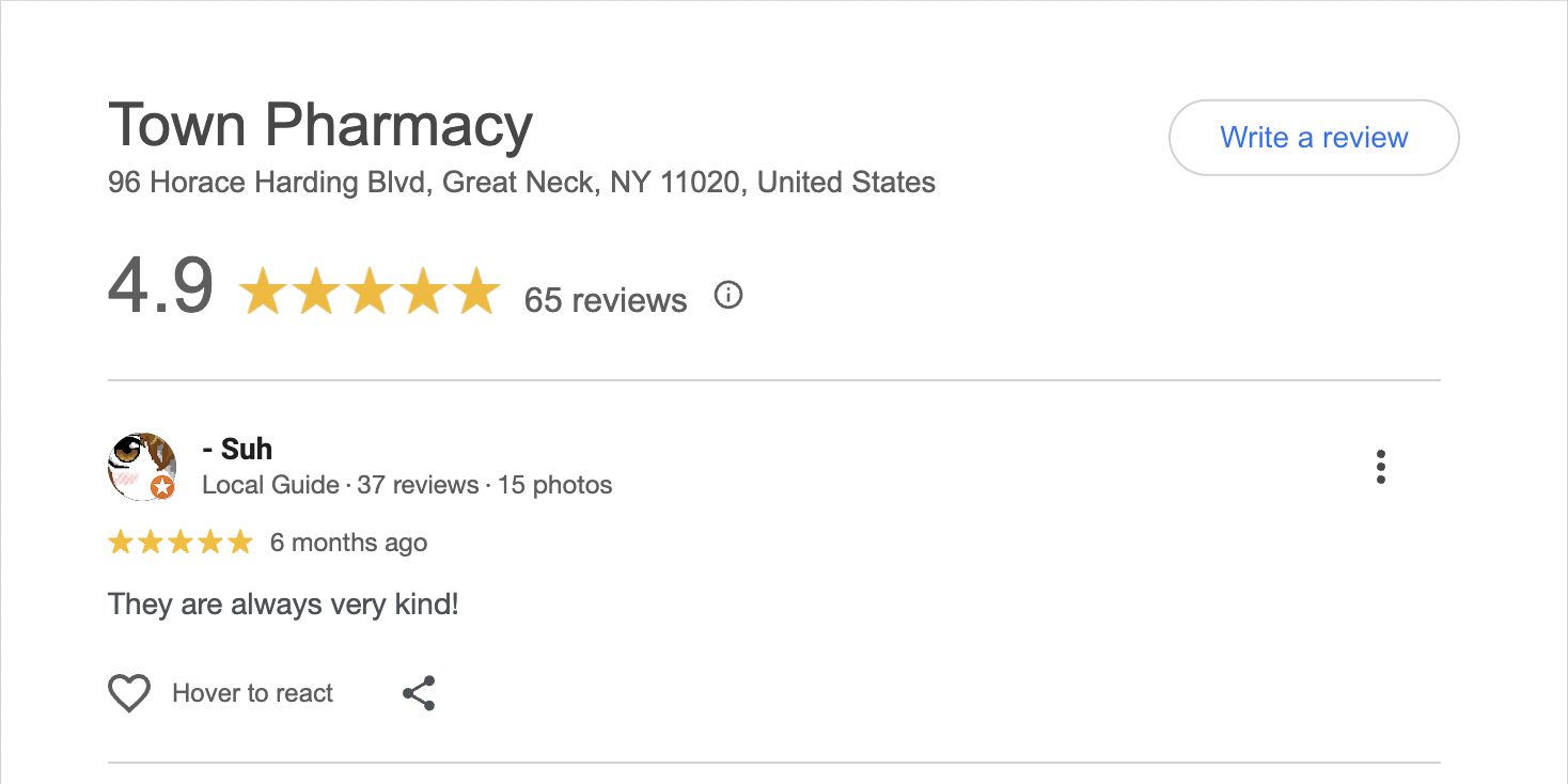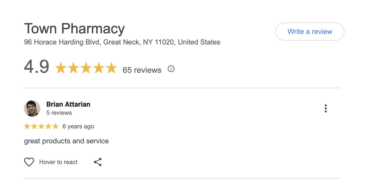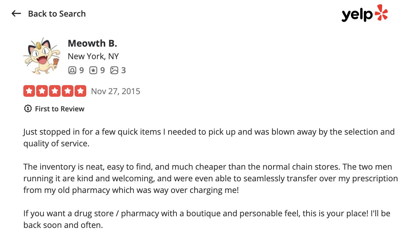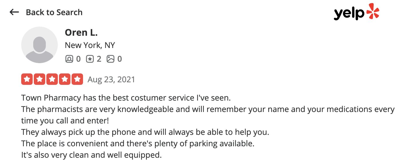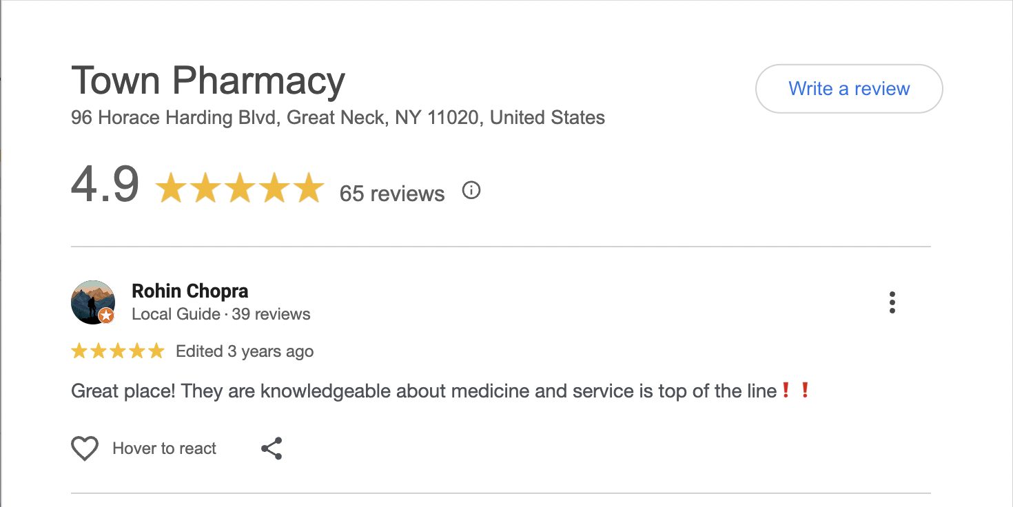 This is a compilation of all reviews received at Town Pharmacy during our time owning and operating the store daily from 2015–2025. We never once solicited anyone for a review. Listed in chronological order.