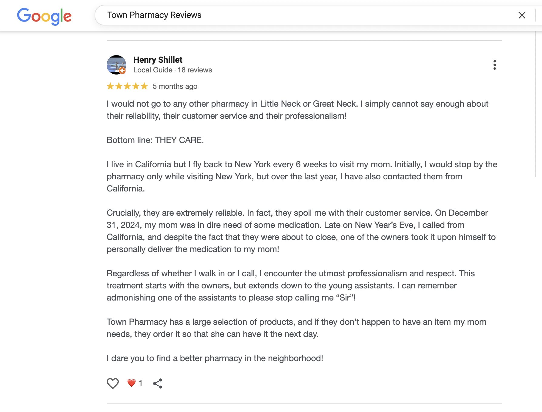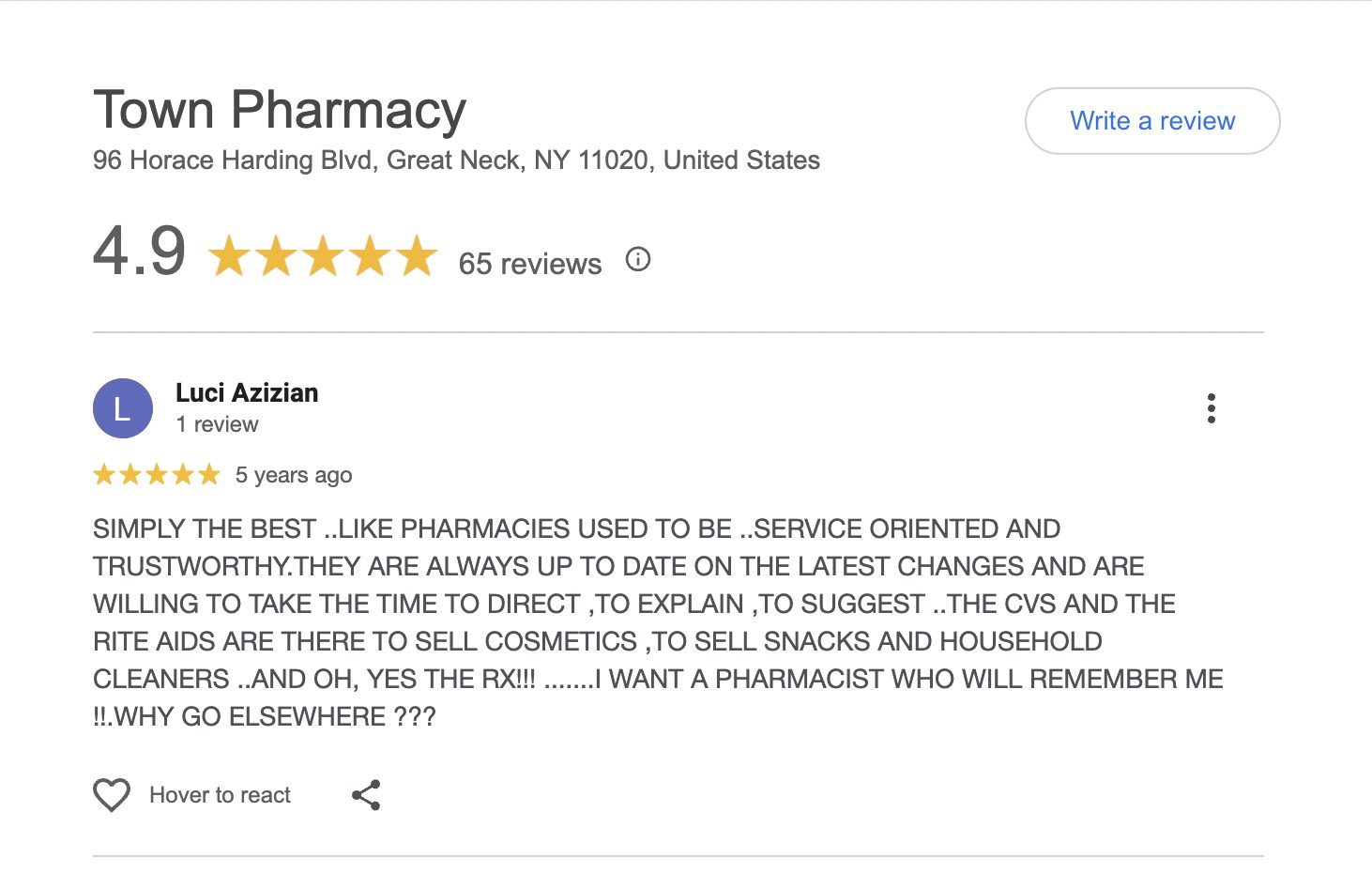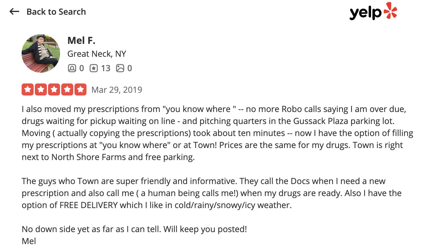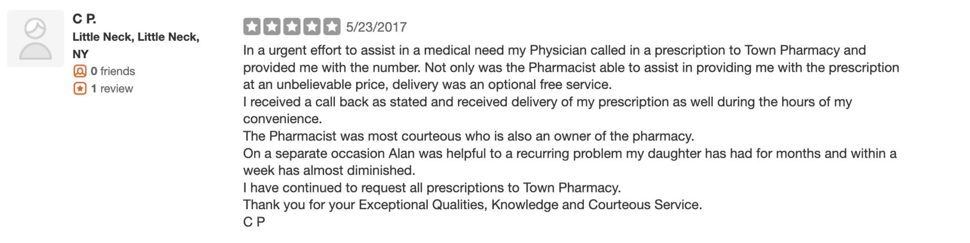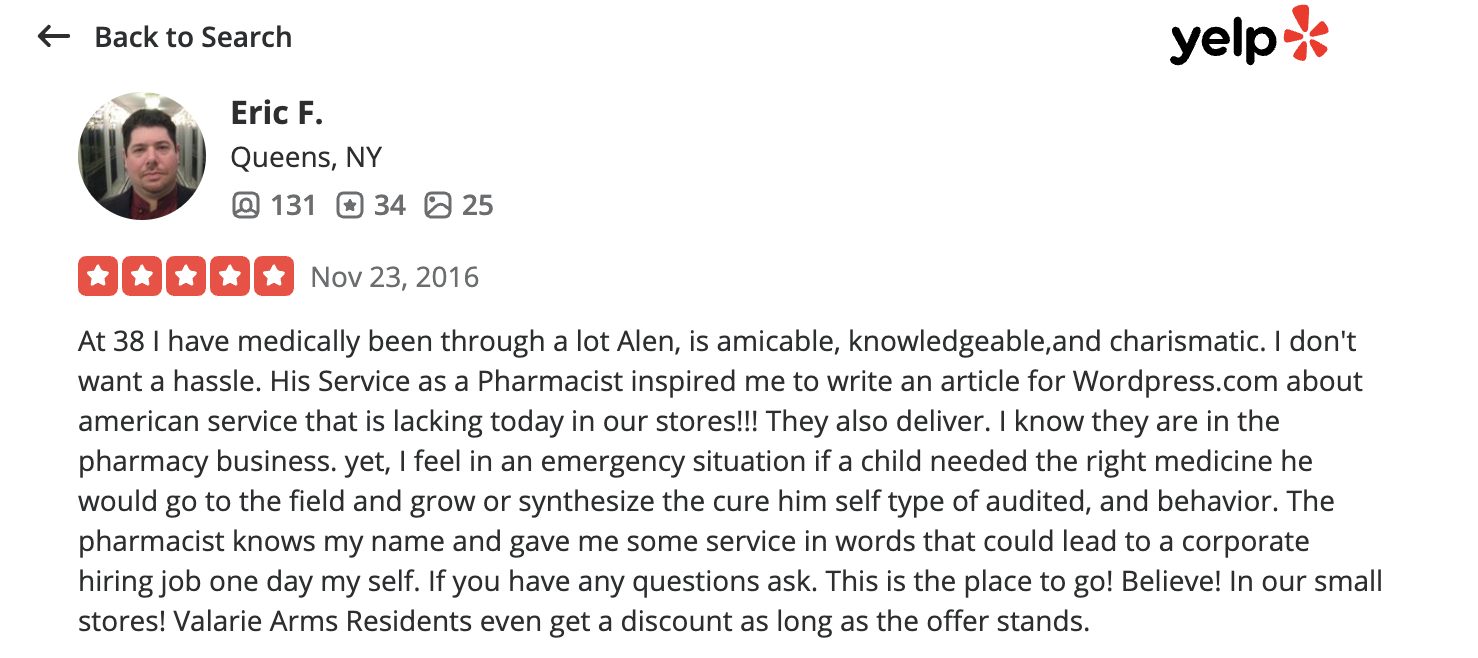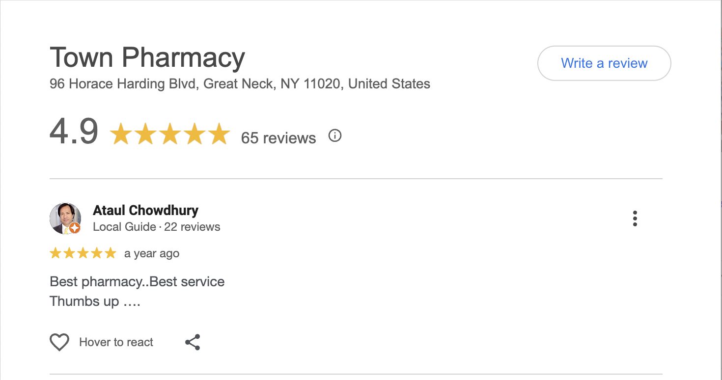 This is a compilation of all reviews received at Town Pharmacy during our time owning and operating the store daily from 2015–2025. We never once solicited anyone for a review. Listed in chronological order.