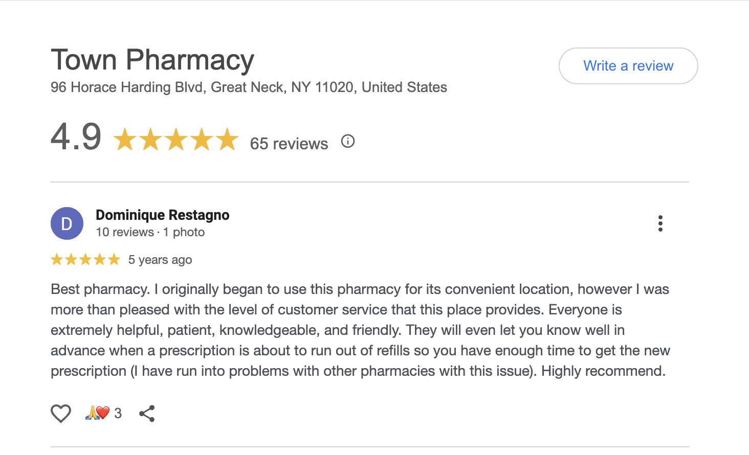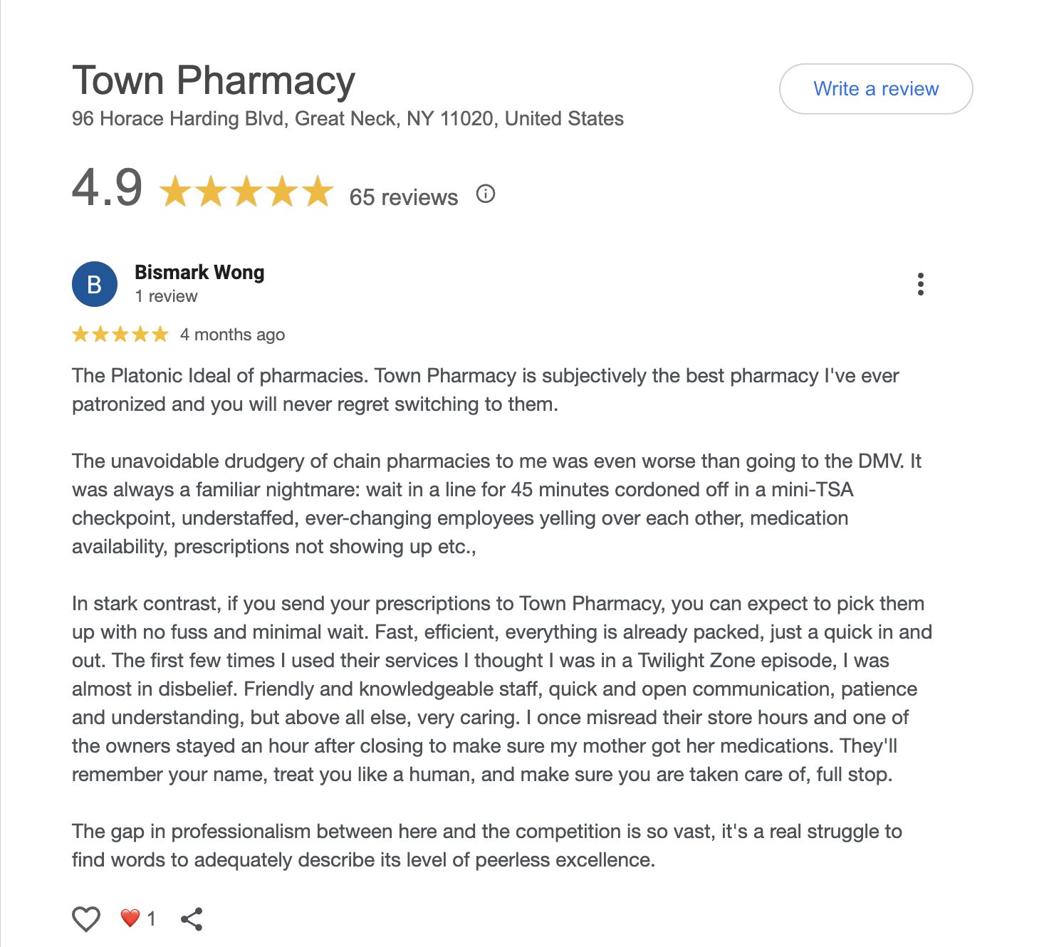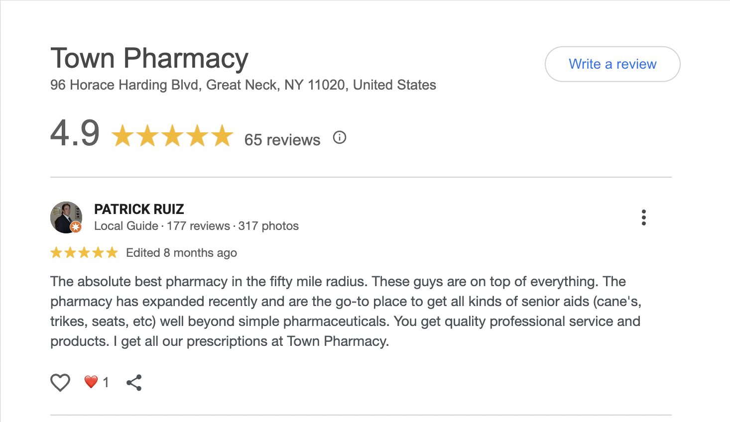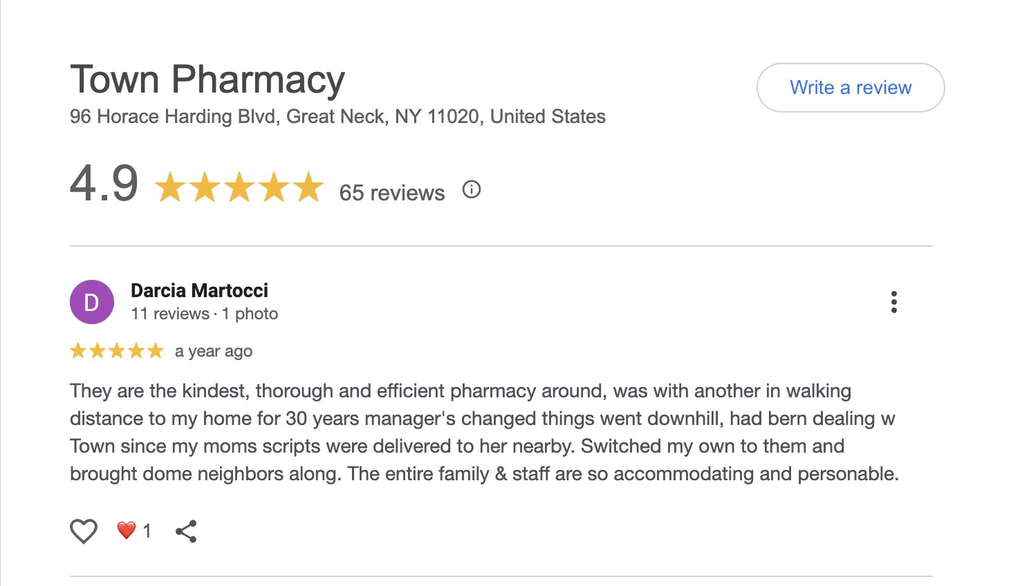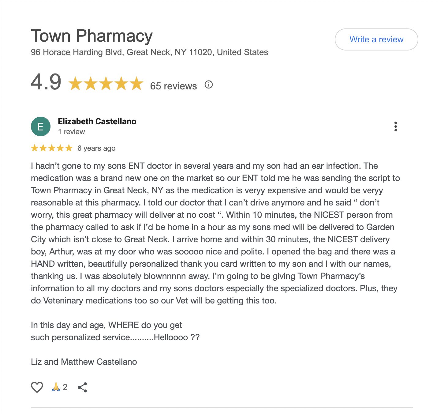 This is a compilation of all reviews received at Town Pharmacy during our time owning and operating the store daily from 2015–2025. We never once solicited anyone for a review. Listed in chronological order.