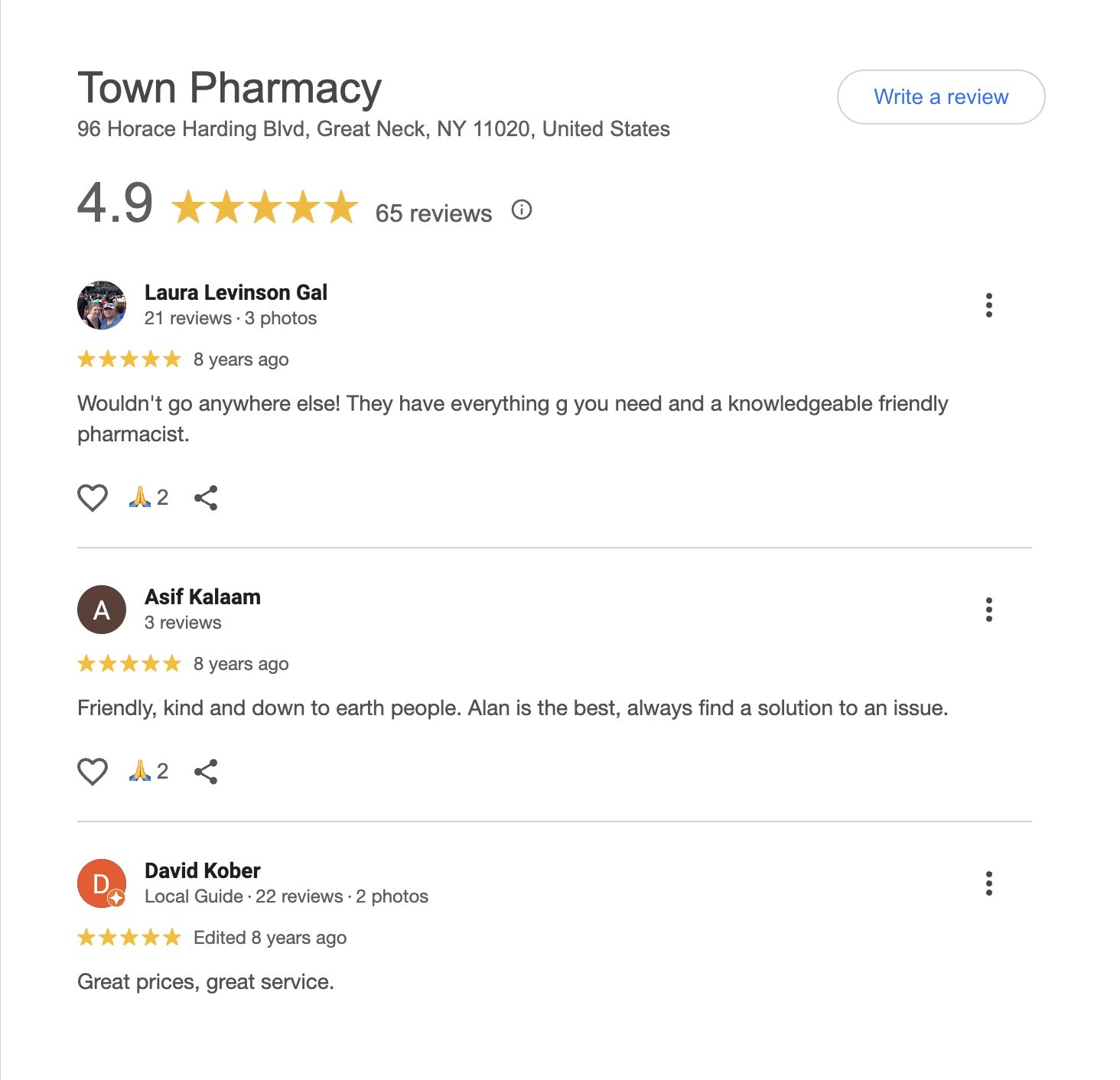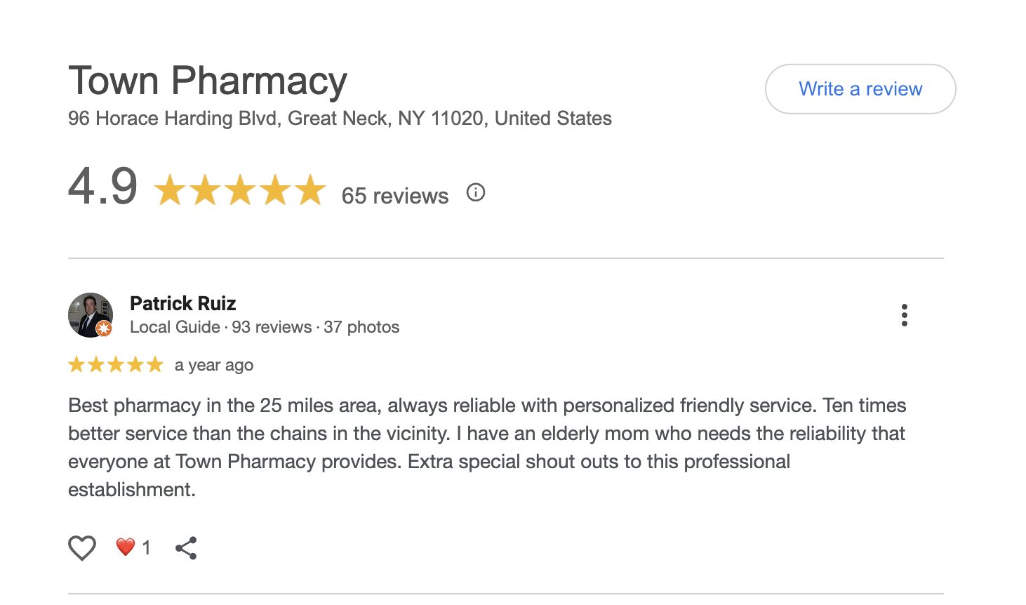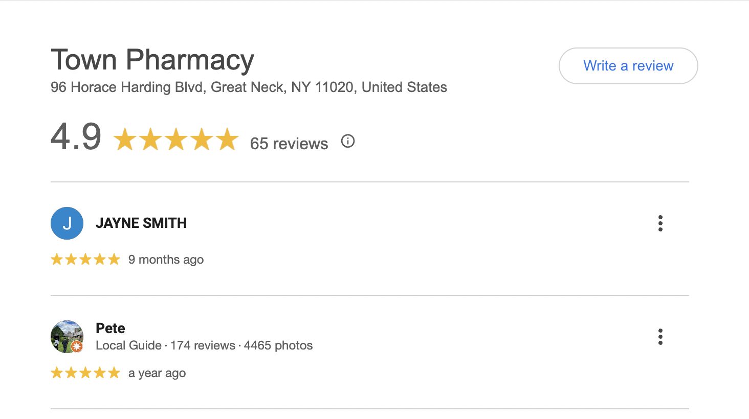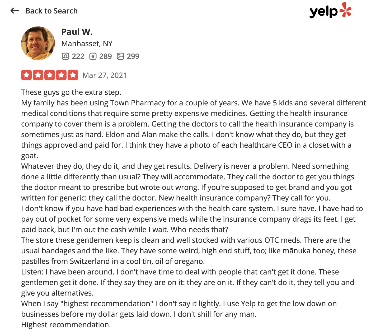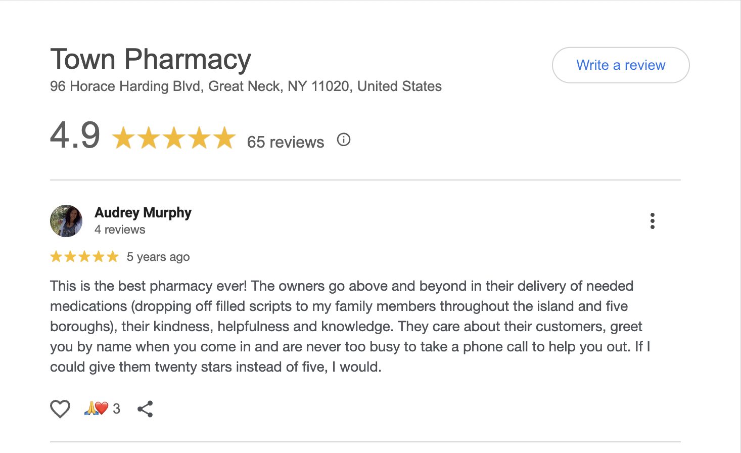 This is a compilation of all reviews received at Town Pharmacy during our time owning and operating the store daily from 2015–2025. We never once solicited anyone for a review. Listed in chronological order.